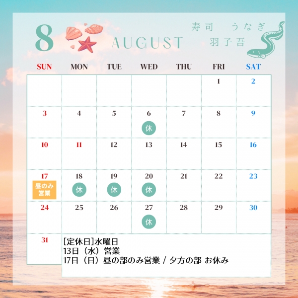 8月の店休日